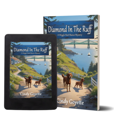 Diamond in the Ruff is the first book in author Cindy Goyette’s cozy canine-themed Wiggle Butt Manor Mystery series set on a small island off the Washington coast and featuring a strong young female protagonist and her companion dog, a lovable cocker spaniel named Noah. With its wonderful main characters, both human and canine, and an intriguing, complex plot, I didn’t want to put this one down.